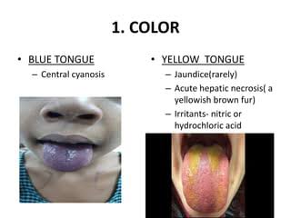 👅 Yellow tongue=> Liver or stomach problem. Also found in poor oral hygiene.